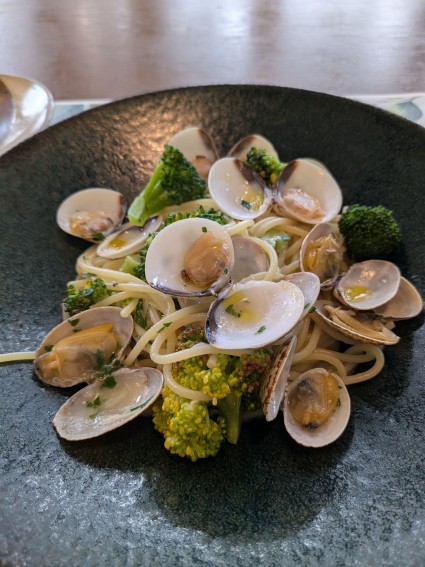 ハマグリとアサリ、ブロッコリーのボンゴレビアンコ