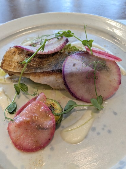 浜田港 鰆のセモリナ粉焼き ふきのとうオイル