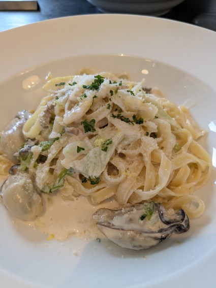 夫は牡蠣のクリームパスタ@フェットチーネ
