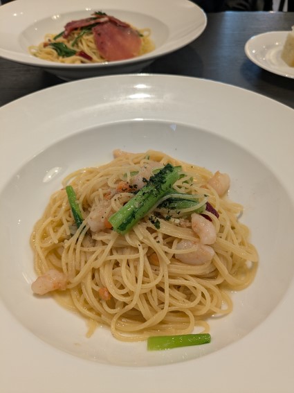 今回は夫がビアンコランチで私はシンプルパスタのランチにしてみた。