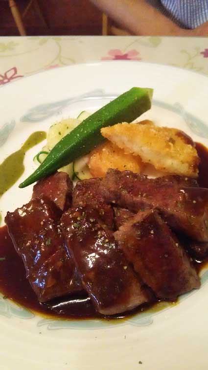 夫はスペシャルランチでお肉を注文。和牛ステーキのセットで1300円