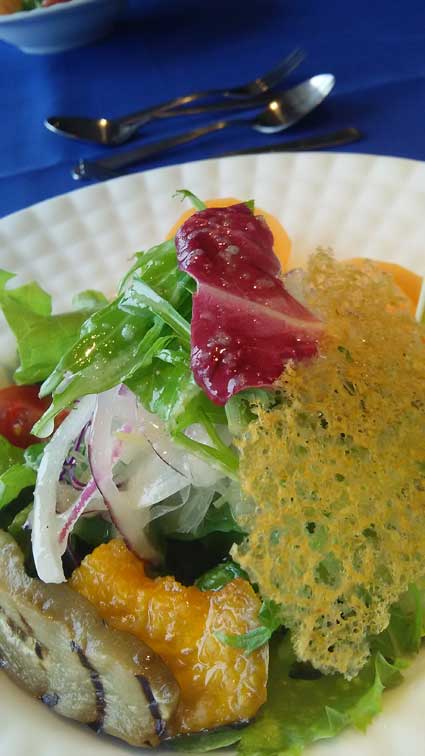 弥栄町産の野菜でサラダ チーズが薄く焦がしてあって美味しい~。