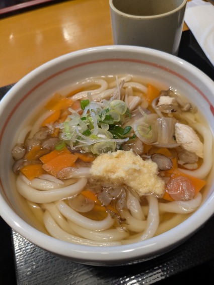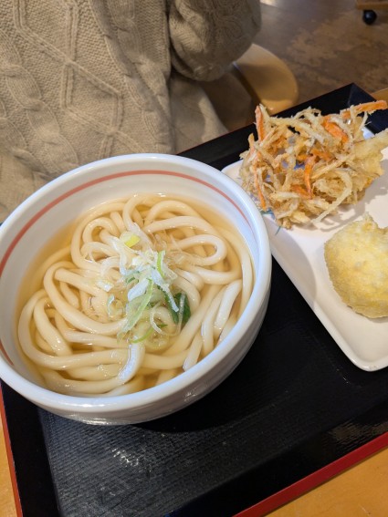 夫は素うどんに野菜のかき揚げとたまごの天ぷら