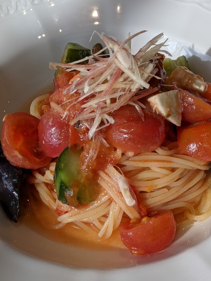 トマトのほんのりした甘さとミョウガがとても夏らしい(笑)