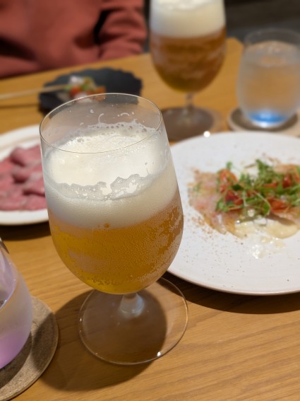ってことでつまみを作ってもらいビールで乾杯@ノンアルだけど