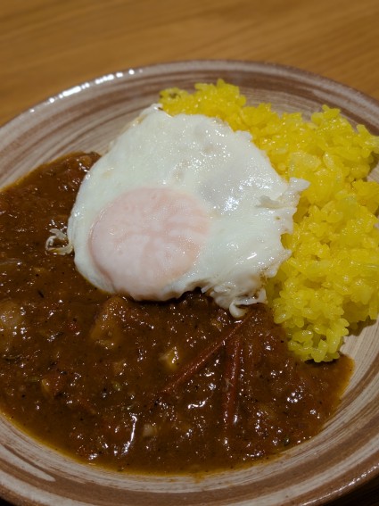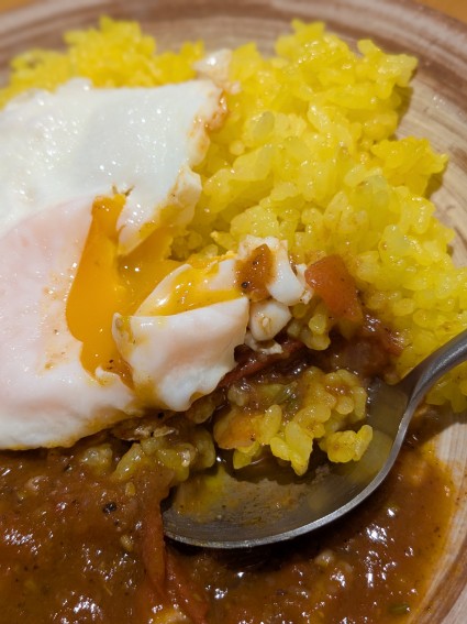 ターメリックライスにスパイシーカレー@目玉焼きのせ