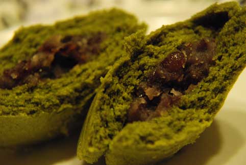 ほんのりした甘い餡としっとりした抹茶生地のむしどらは