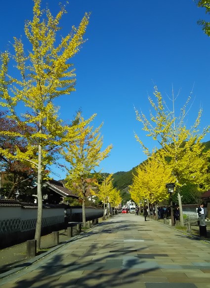 町並みに沿って木々がきれいに紅葉している。
