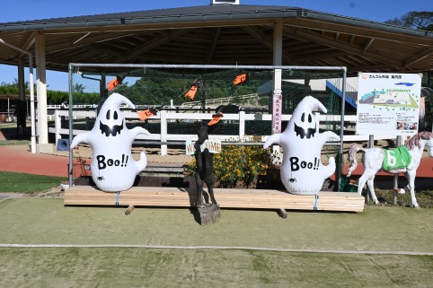 天気が良かったのでさんさん牧場まで行くとハロウィン仕様になっていた。