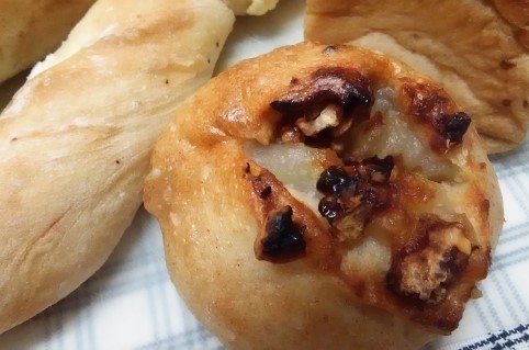 お昼に、キャラメルとドライいちじくのパン、ひと山食べて、