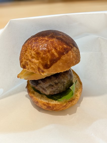 京村牛のパテにスモモが挟んであって力強いワインにぴったり。