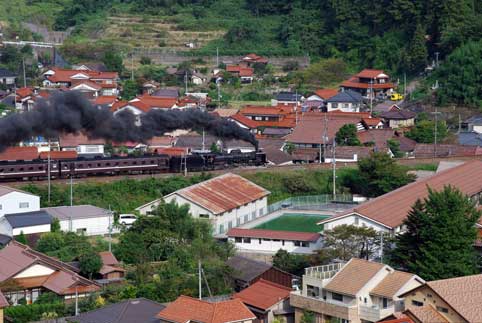 赤瓦の家々の中を縫うように、黒い煙を吐いて走る貴婦人の美しいこと!!