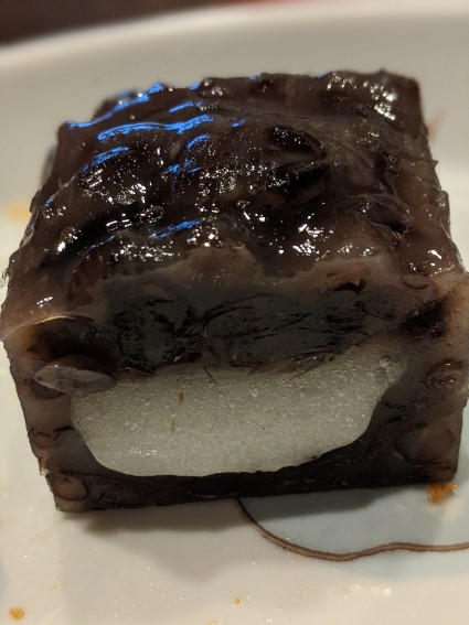 粒あんの中にはもっちりと柔らかなお餅が入っている。