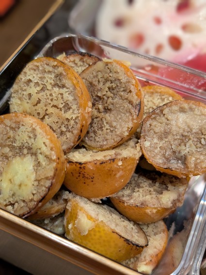 小さな金柑の料理があったのでひとつつまみ食いをした。