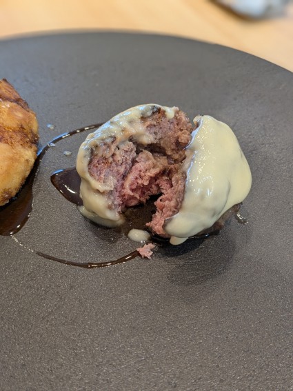 シェフがハンバーグのようなものと説明していたので(笑)