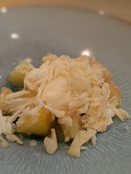 デザートはパイナップルのソルベとトンカ豆のパンナコッタ