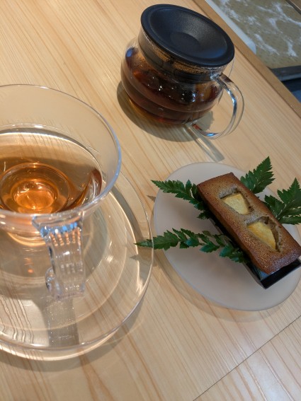 最後には紅茶@シソ茶と桃のフィナンシェ