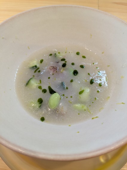 爽やかな甘さの梨のスープにはきゅうりや枝豆も入っていて