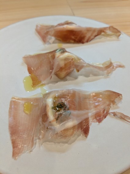生ハムの塩味と桃の甘さがなんとも絶妙だこと!! 美味しい!!