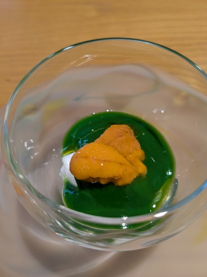 そのあとをまろやかな雲丹とほろ苦い菜の花のソースってどうよ!!