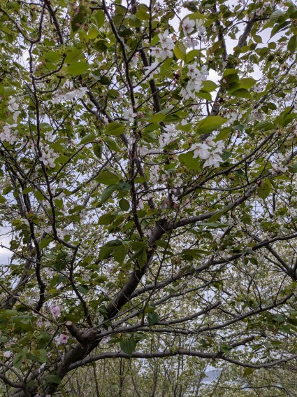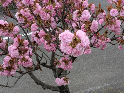 わさびとの歩く道には、八重桜が咲き始めていた。