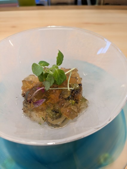 色んな美味しい食材がほんのり苦いどくだみ茶のジュレに隠れていて