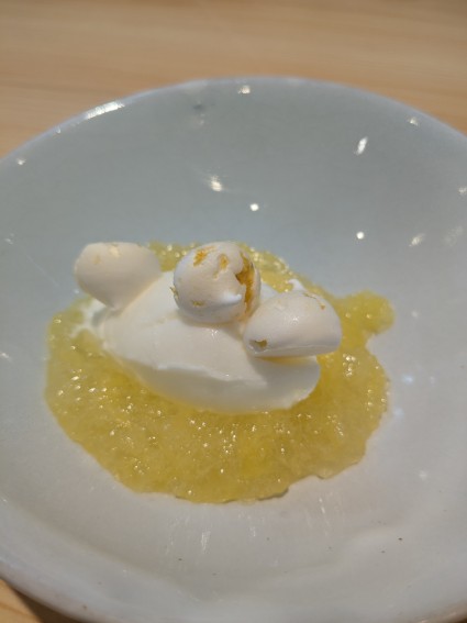 デザートは爽やかな甘夏のジュレにジェラードとかわいいメレンゲ