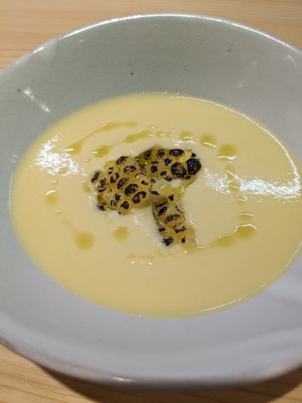 益田産のトウモロコシを使ってのスープで