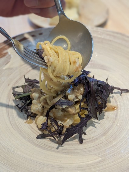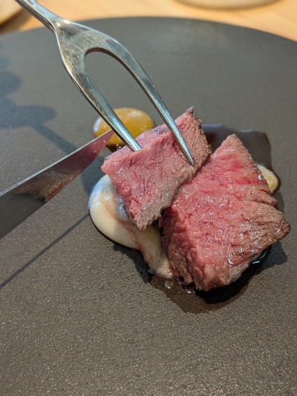 里芋とオレンジのソースを付けるとまた味わいが違ってきて
