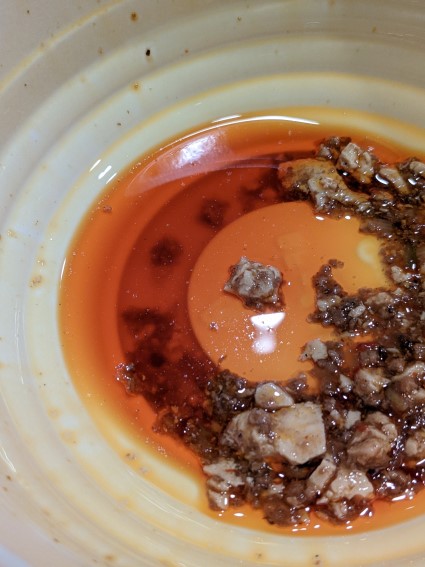 陳麻婆豆腐を食べた残りの器にたっぷりあるラー油