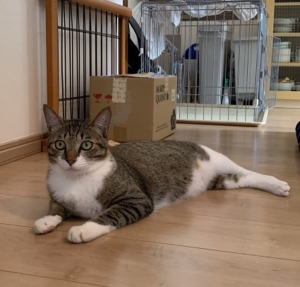 冷蔵庫の番をするわさび・・・ではなく、