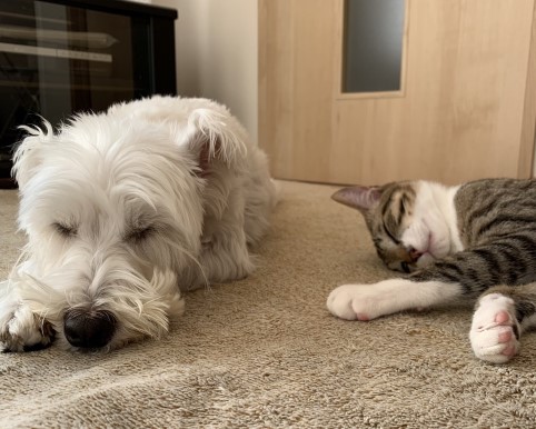 毎朝、2匹は取っ組み合いのプロレスをする仲だそうだ。