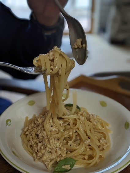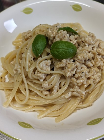 冷凍庫に鶏むねのミンチ肉があるのでパスタにしよう。