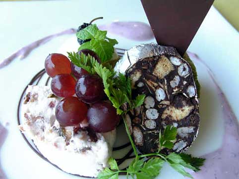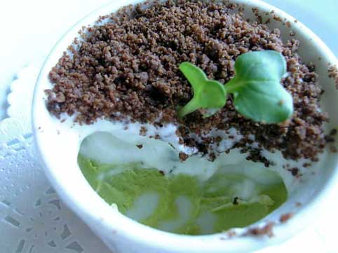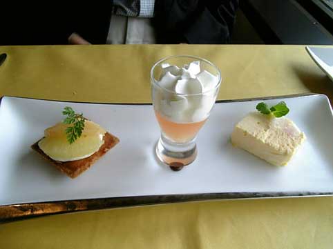 それから枝豆のムース、スライスしたチョコ、枝豆のムース・・・とかがあって、