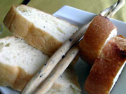 パンは3種類。グラッシーニとフォカッチャ、セモリナ粉で作られているバゲット
