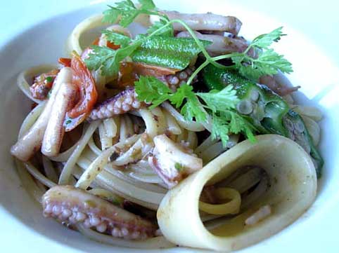 この楕円の平たいのもパスタ。イカかと思ったよー。