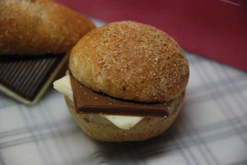冷やすとパンが堅くなるので、チョコとバターをはずしてから焼き、食べるときにサンドする。