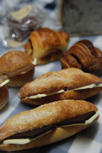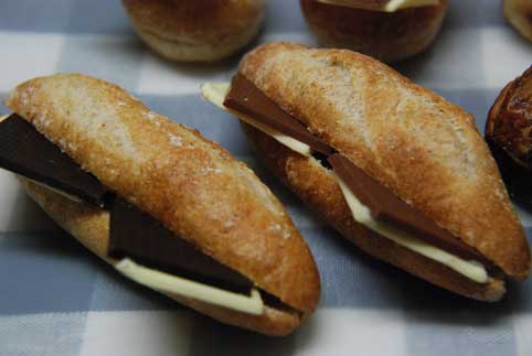 フランスパンにキャラメル風味のミルクのショコラと、コクのある有塩バターをサンド。