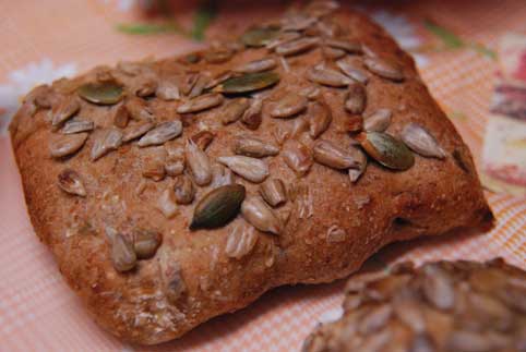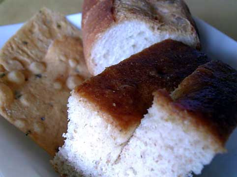 全粒粉で作られたフォカッチャとバゲット、パリパリとしたパン