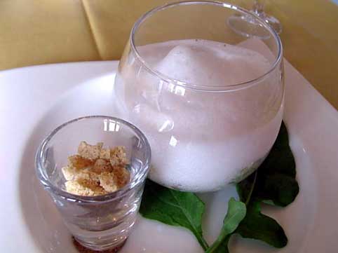 真ん中にソフトクリームのような野菜シャーベットがしっかりとした存在感で隠されている。