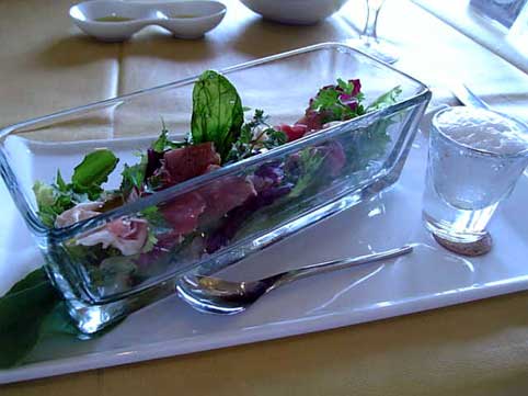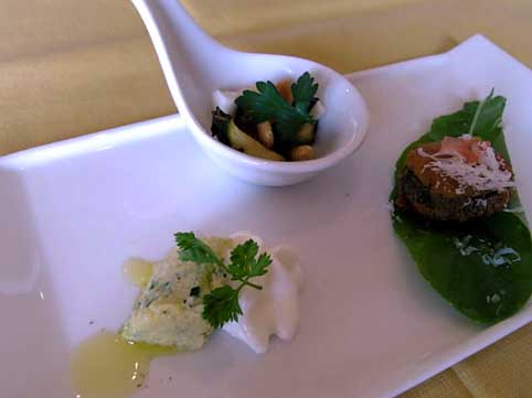 そのランチコースには、食前の小さな一皿、前菜、パスタ、パン、そしてデザートとコーヒーがつく。