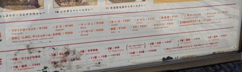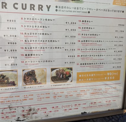 ベースがビーフカレーでトッピングと辛さによって値段が変わる。