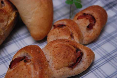 ベーコンエピ。胚芽入りのパンはサクサクとしてとても香ばしい。