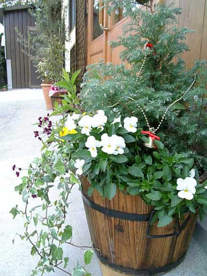 お店の外はかわいい花で飾られ
