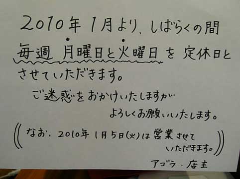 そんなagoraさんの来年1月の営業日カレンダーはこちら