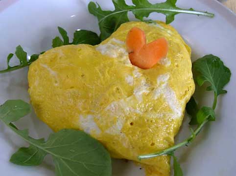 パンのふちにはマヨネーズの土手があり、半熟の卵焼きがのっている。