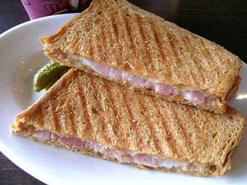 夫は黒糖食パンでチーズとハムをはさんだホットサンド。