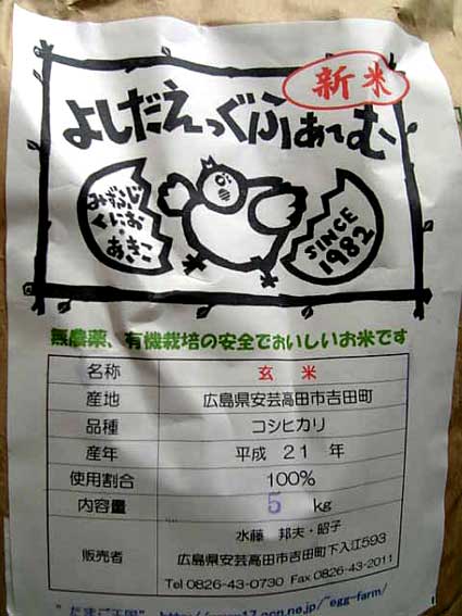 くんちゃんから新米の玄米を2袋と自然卵2パックをわけてもらった。