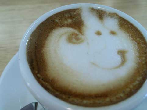 そしてカフェラテにはかわいいうさぎさんの絵が~。