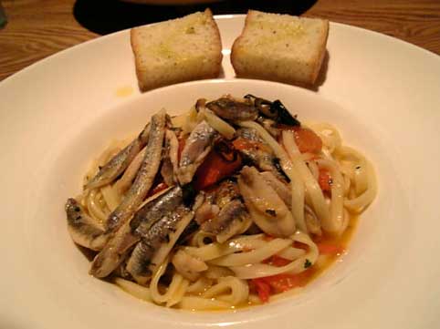 たっぷりと小イワシが使ってあって、平たい麺とよくあう。